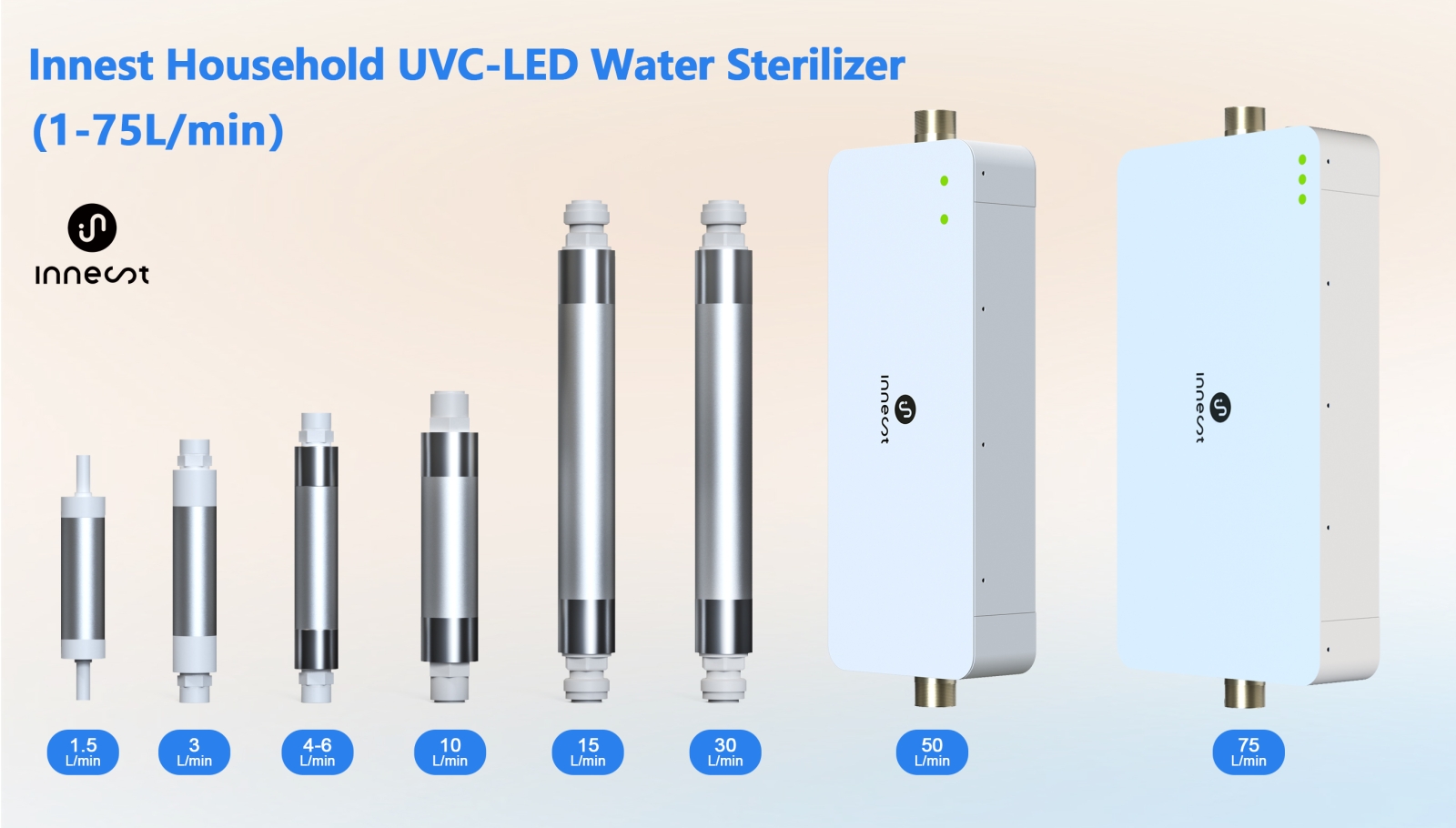 Innestの家庭用UVC-LED水殺菌器シリーズは、ご家庭の浄水システム向けに設計されており、わずか0.2秒で水中の細菌・ウイルスを99.999%除去 し、安全で清潔な飲料水を提供します。