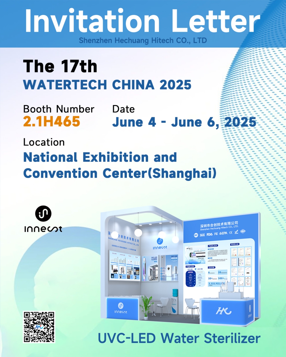 As June approaches, the 2025 Shanghai International Water Exhibition is set to kick off on June 4th. As an industry leader in UVC-LED water disinfection technology, Innest (Hechuang Technology) is fully prepared to make a strong appearance with a custom-designed 27m² booth, presenting our latest technological achievements and product innovations in the field of water treatment.