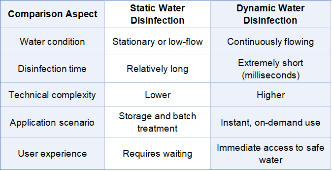 As awareness of drinking water safety and public health continues to grow, UVC-LED water disinfection technology is being increasingly adopted across residential, commercial, and professional applications. In real-world use, UVC-LED water disinfection generally falls into two categories: static water disinfection and dynamic water disinfection. These two approaches differ significantly in their working principles, application scenarios, and technical requirements.